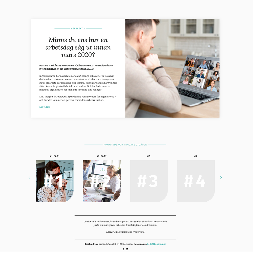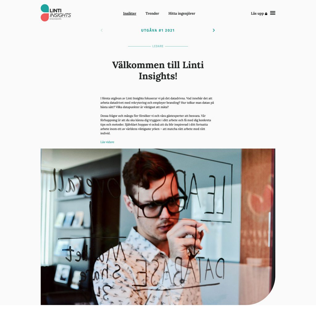 Som en del av vårt samarbete med Linti Group ombads vi att hjälpa till med både en redaktionell webb och ett och ett statistikverktyg med insikter i unga ingenjörers åsikter. Den redaktionella delen, designad av Wolfgang, implementerades snabbt tillsammans med en lösenordsskyddad medlemssektion.